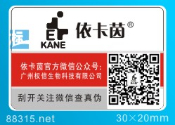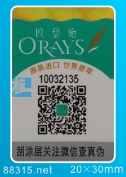 微信公眾號防偽是二維碼防偽重要形式,標一防偽是集微信公眾號防偽系統開發及標簽制作為一體的高科技公司,在此領域具有強大的實力與豐富的經驗,部分客戶樣標如下: