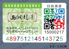 西湖龍井茶使用的是標一防偽開發的最新的防偽防竄貨及二維碼質量追溯系統。