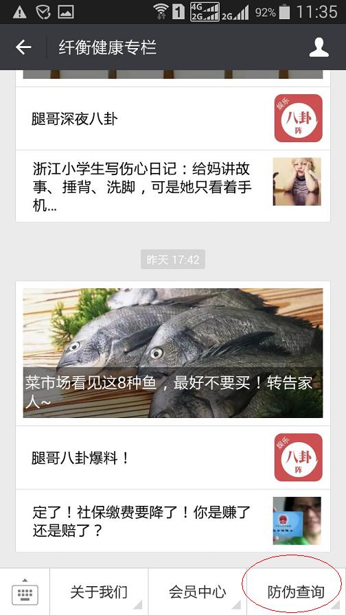微信關(guān)注及微信平臺(tái)中的防偽查詢功能